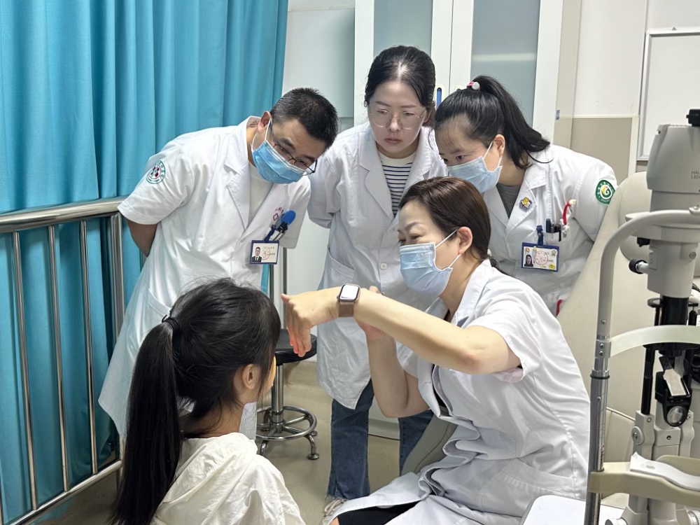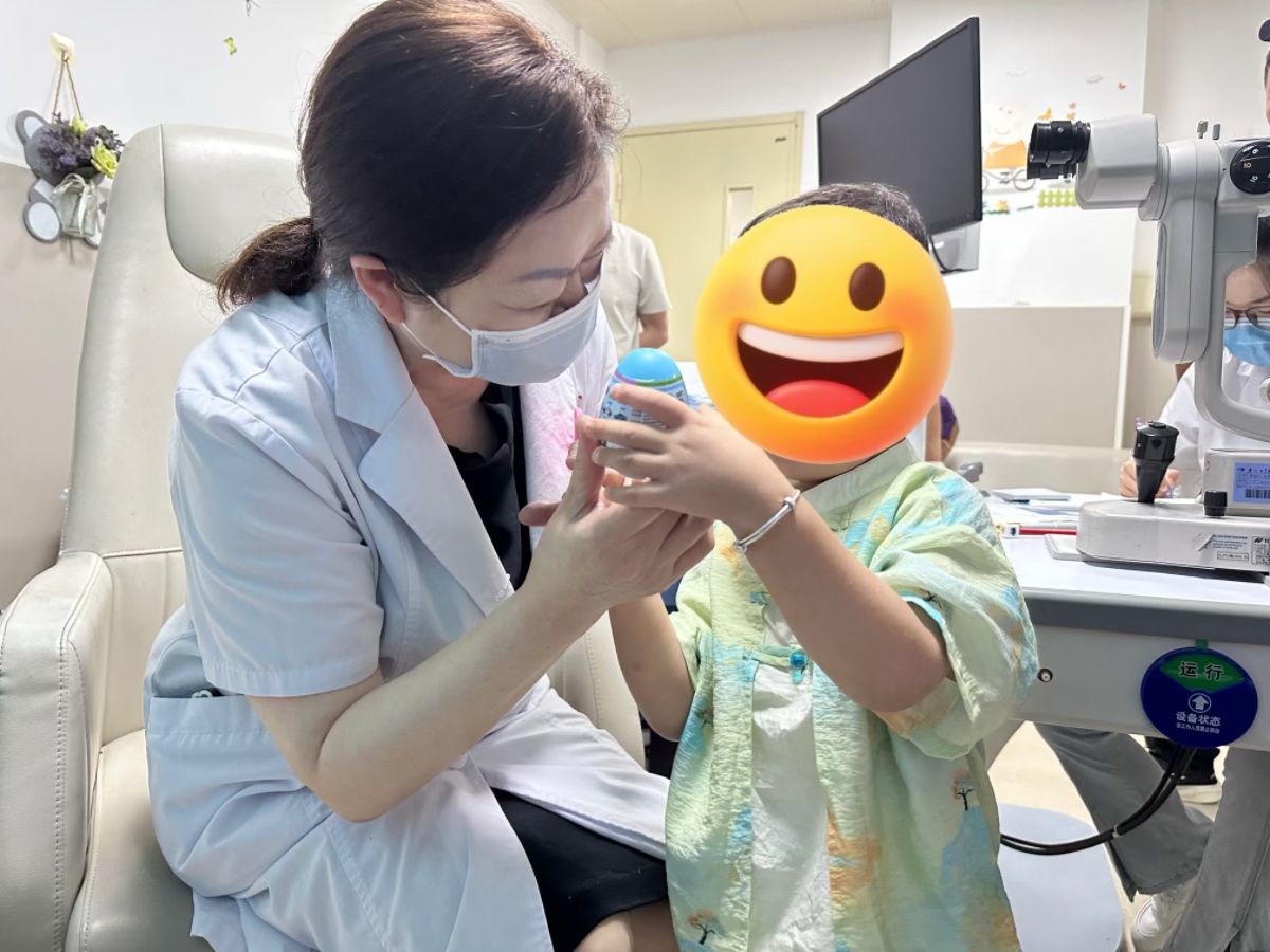 “點點到中間”、“寶寶,我們看亮亮”、“眼睛正正的”……這些童趣的話語充滿了力量,給予患者術(shù)后恢復(fù)的信心。
