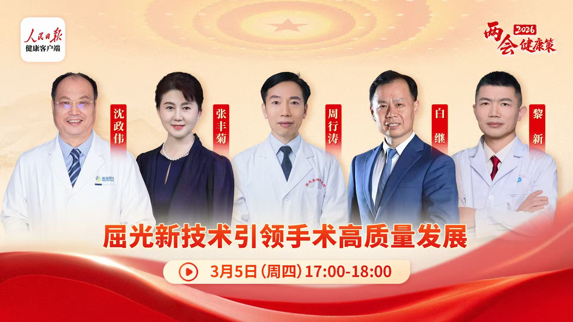 作為兩會(huì)期間最具影響力的健康對(duì)話平臺(tái)之一,本次人民日?qǐng)?bào)健康客戶端“兩會(huì)健康策”眼健康專場(chǎng)重點(diǎn)探討屈光手術(shù)這一高技術(shù)壁壘領(lǐng)域,圍繞如何以科技創(chuàng)新賦能臨床實(shí)踐、讓更多患者享受同步國(guó)際的先進(jìn)診療服務(wù)展開(kāi)深入交流。
