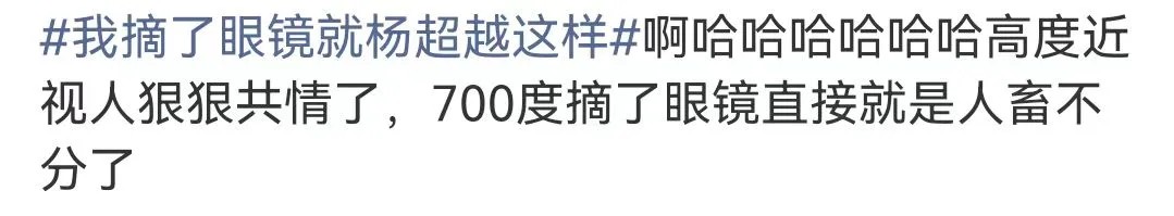 繼楊超越自曝700度高度近視引發(fā)熱議后,近日她在某綜藝中摘了眼鏡穿針的行為再次沖上熱搜——#我摘了眼鏡就楊超越這樣#。